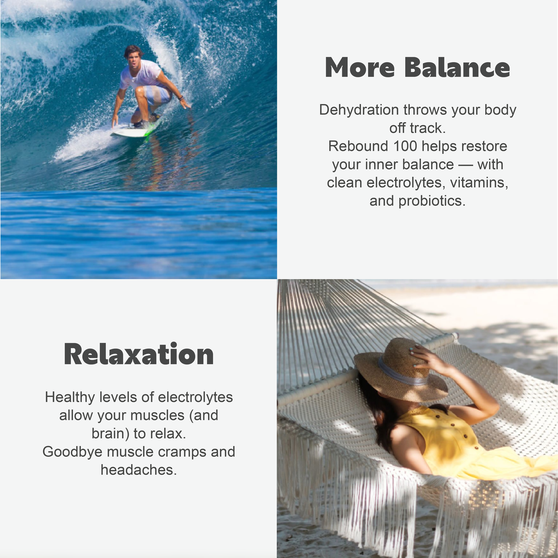 Rebound 100 is made for people like you. With just one glass, it helps restore what the day takes away—hydration, focus, and daily wellness.