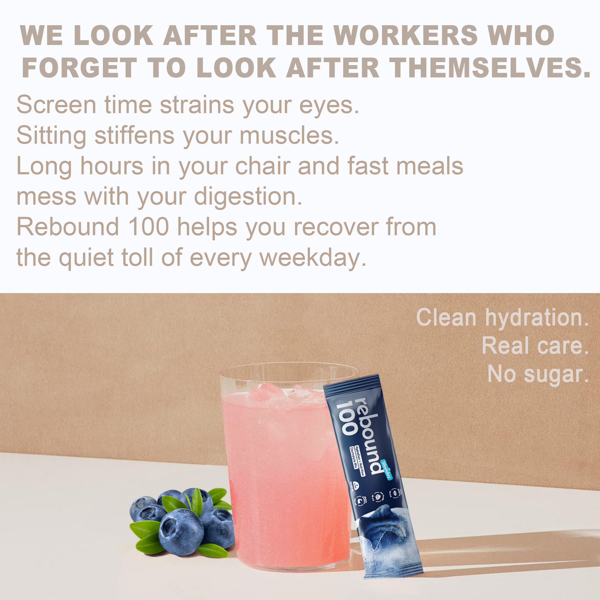 Blueberry-powered hydration with nutrients that support eye comfort, gut health, and muscle relief—tailored for screen-heavy workdays.