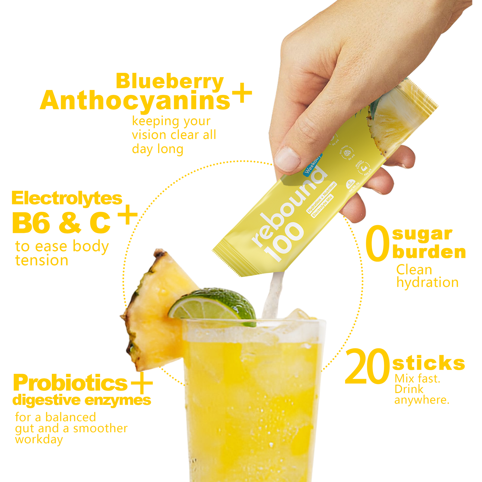 Rebound 100 Pineapple brings a burst of tropical energy to your daily routine, helping you reset fast with every sweet, juicy sip.